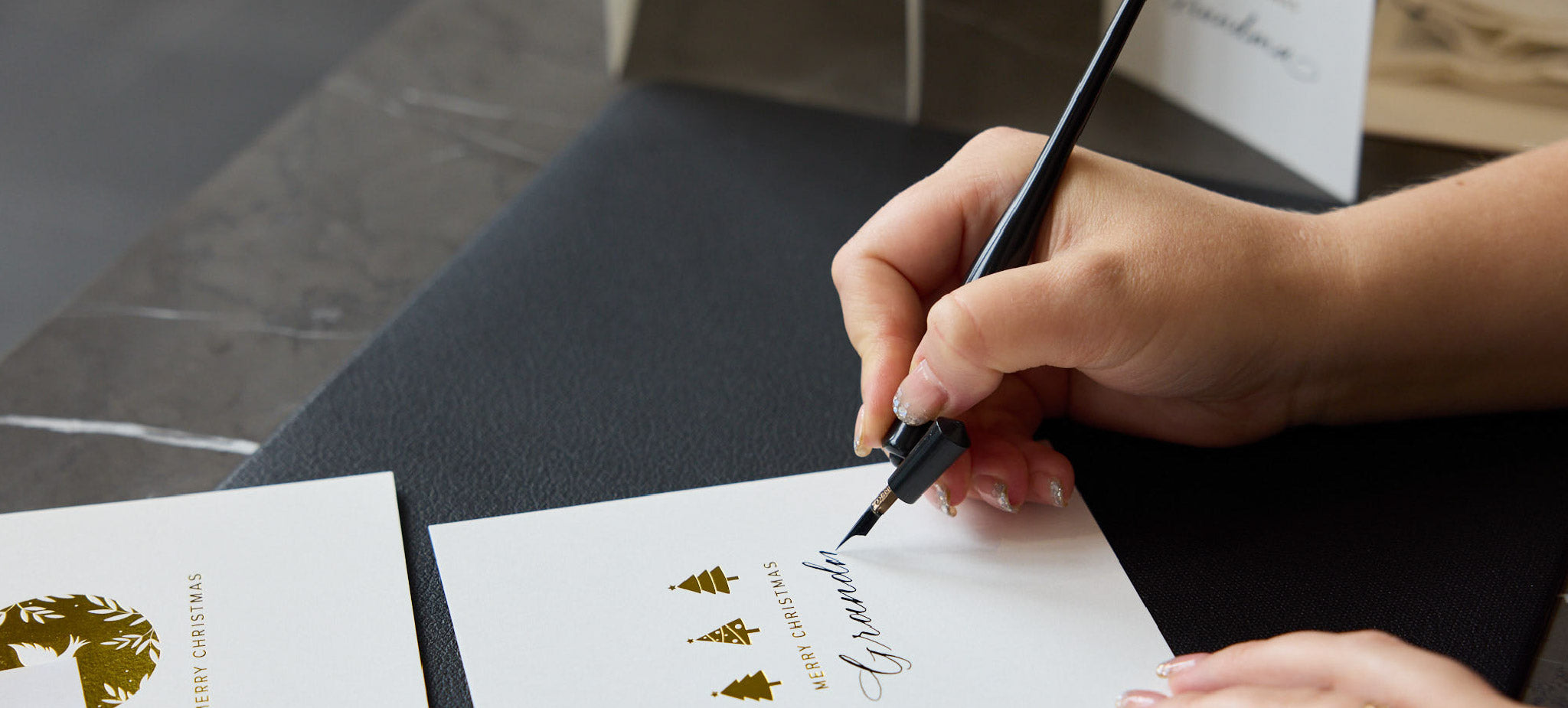 Yes, all of the personalisations are done by hand with either a calligraphy pen, engraving pen machine or hot foil press pen machine.