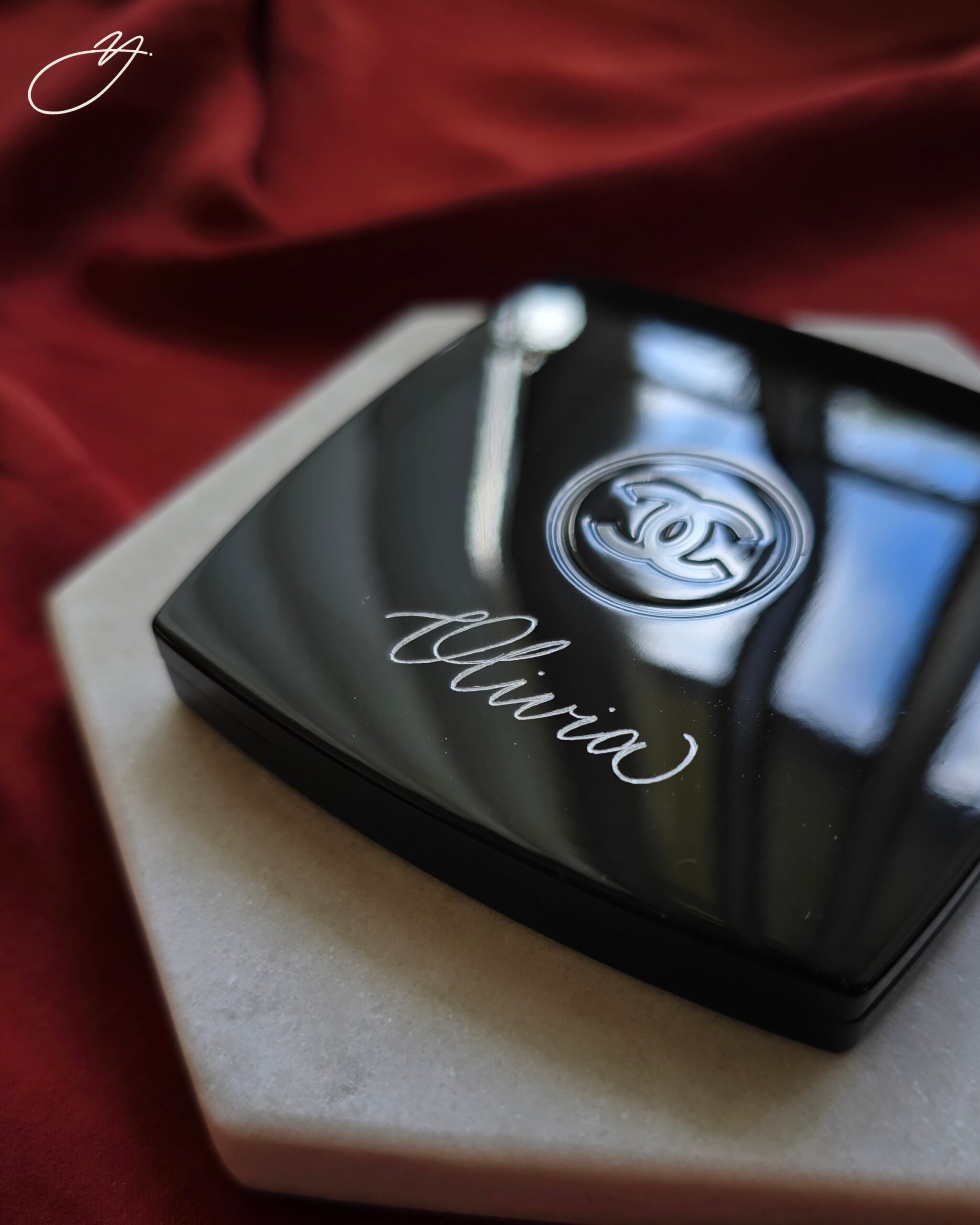 Give the gift of elegance with a hand-engraved Chanel Compact Mirrorâa timeless keepsake perfect for bridesmaids, the bride, maid of honour, mother of the bride, or a special treat for yourself. It also makes a thoughtful birthday, anniversary, or just-because gift.